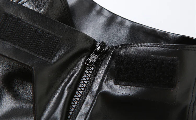 Pair this sexy PU tank top with high-waisted leather pants and platform boots for an all-out punk look, or style it with denim shorts and a mini bag for a flirty, festival-ready outfit.