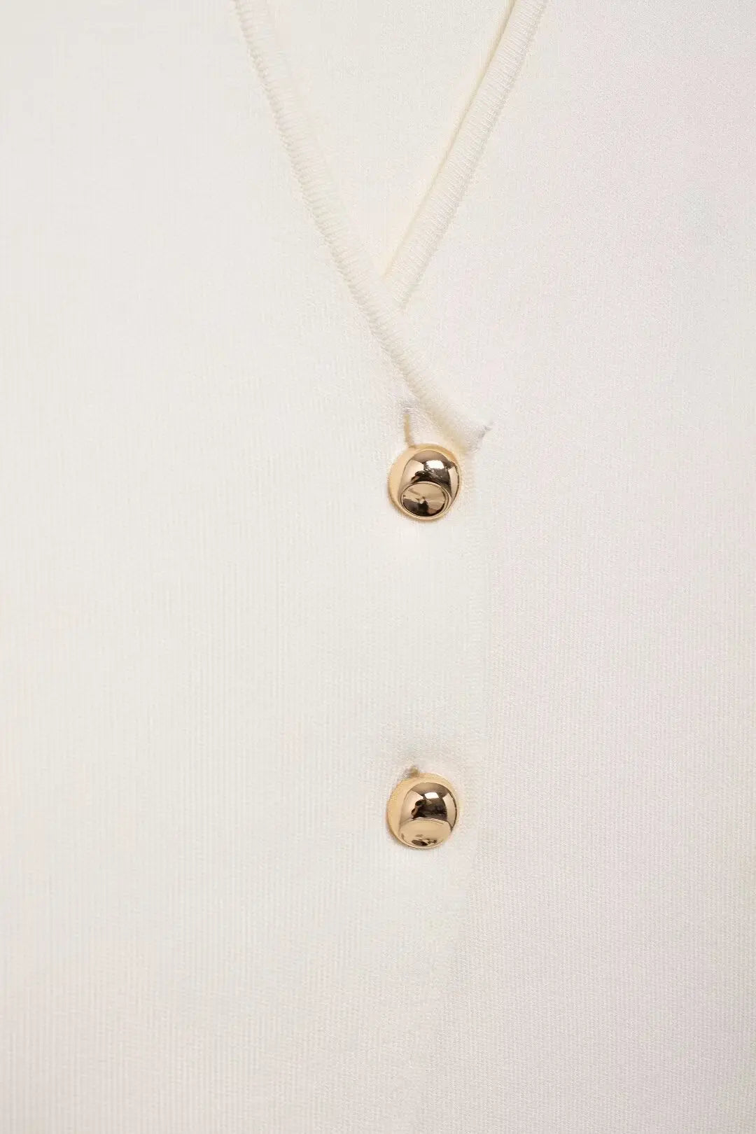 ✔ Top Design: V-neck sleeveless vest with button details, adding a structured yet relaxed touch.