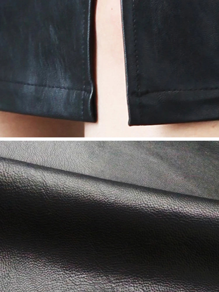 Leather Midi Office Chic Skirt