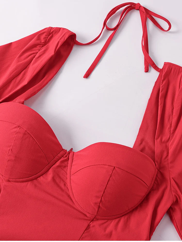 Pair this sophisticated corset midi dress with strappy heels, a statement clutch, and delicate jewelry for an elevated party look. Layer with a long coat and knee-high boots for a high-fashion winter ensemble.