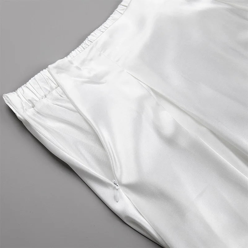 Fabric: Luxurious satin blend with a silky finish for graceful movement